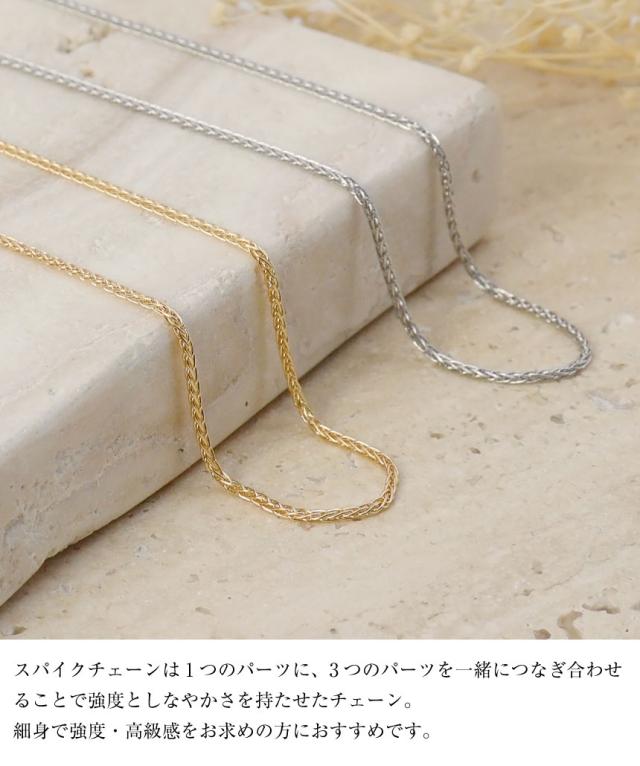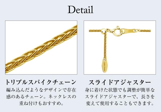 K18ゴールドトリプルスパイクチェーン。シンプルにそのまま着ければデコルテにアクセントにもなり、お手持ちのネックレスと重ね付けすれば上級オシャレを演出します。
