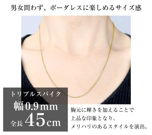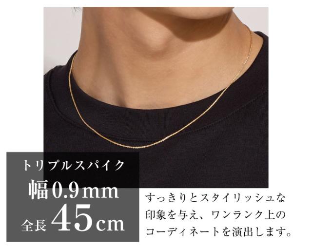 ララクリスティー ゴールド チェーン ネックレス 18金 K18 トリプルスパイク 幅0.9mm 約2.85g 最長45cm 長さ調整可能 lc97-0055 LARA Christie ネックレスチェーンコレクション クリスマス_wp