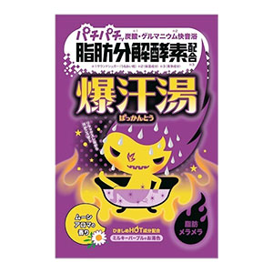 「爆汗湯」シリーズ共通配合のゲルマニウム、温泉ミネラル、ひきしめHOT成分(トウガラシエキス・ショウガエキス・岩塩)に、脂肪分解酵素などをプラス。