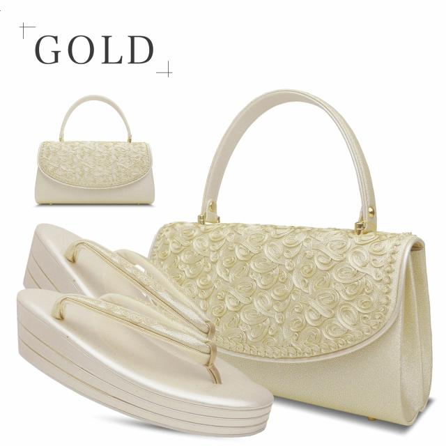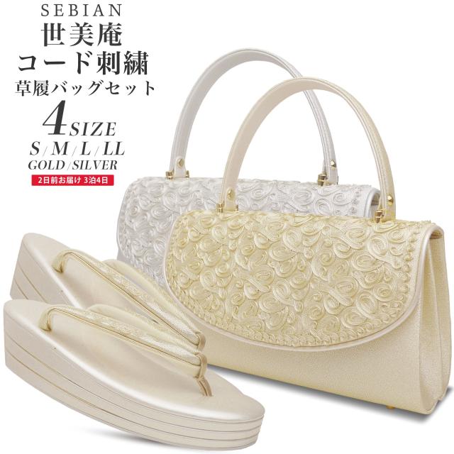 レンタル 世美庵 コード刺繍 草履バッグセット 留袖 訪問着 S M L LL サイズ フリーサイズ 小さいサイズ 大きいサイズ ゴールド シルバー 金 銀 セビアン 草履 バッグ セット 優花緒草履 痛くない鼻緒 礼装 フォーマル