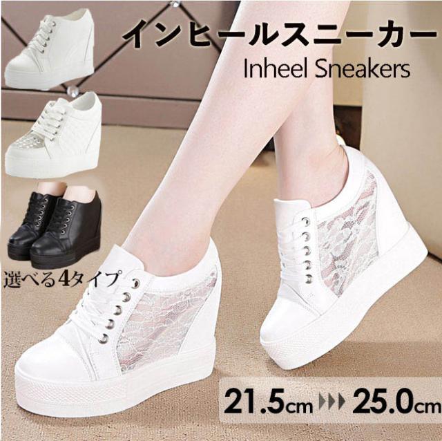 シューズ ハイカット 厚底 インヒールスニーカー 大きいサイズあり スニーカー レディース カジュアル 黒 白