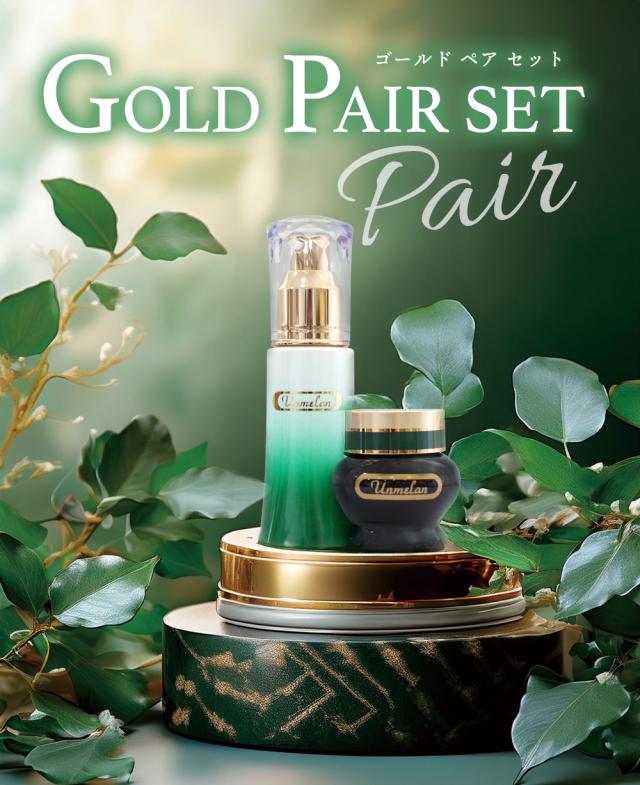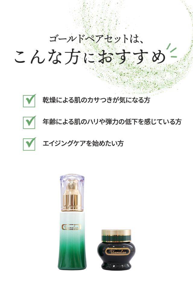 一つ上をいくゴールドシリーズのペアセット。肌本来の美しさをとりもどす化粧水とクリームのセットです。