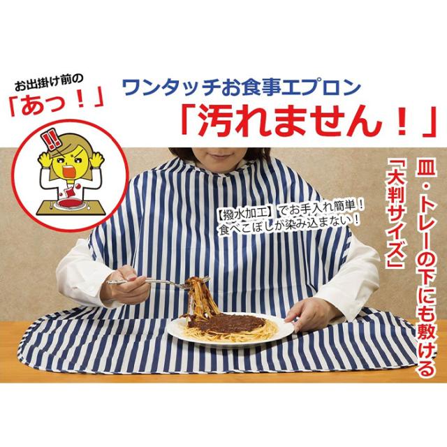 ■商品名:お食事エプロン 食事用エプロン 大判 ポリエステル100% 撥水加工 お手入れ簡単 面テープ 着脱簡単 便利グッズ 便利アイテム ワンタッチお食事エプロン 汚れません