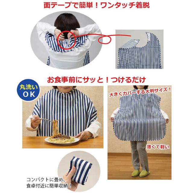 ポリエステル100% 撥水加工 面テープ お食事エプロン 食事用エプロン エプロン 食べこぼし 対策 衣類 洋服 汚れ防止 キッチン キッチンアイテム キッチングッズ 介護 介護用品 便利 便利グッズ 便利アイテム