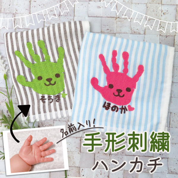 ハンカチ ハンドタオル 手形アート 子供の手形 子どもの手形 赤ちゃん手形 メモリアル 記念品 手形・足形 キッズ ベビー 出産祝い 刺繍