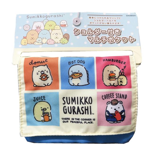 すみっコぐらし マルチポケット キッズポシェット ショルダーマルチポケット付き ハンカチ入れ ティッシュ入れ 粧美堂 キッズポシェット ショルダーマルチポケット付き Sun-X