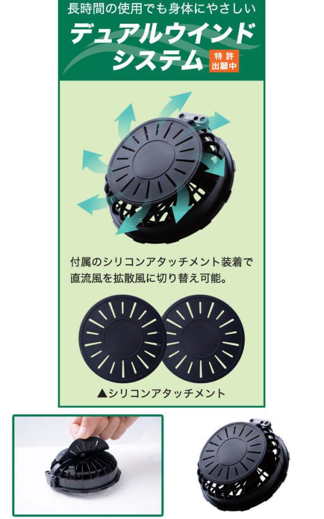 ・シリコンアタッチメント装着で直流風を拡散風に切り替え可能
