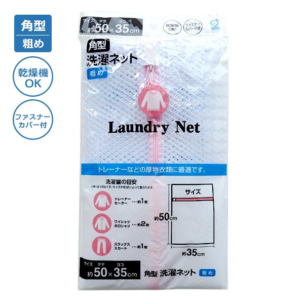 角型洗濯ネット 粗め 50×35cm | ランドリーネット ファスナー カバー付 角型 からみつき 防ぐ 型くずれ 抑える 乾燥機OK トレーナー 厚物衣類 粗め