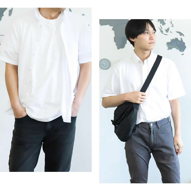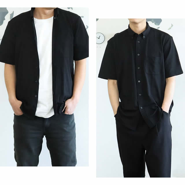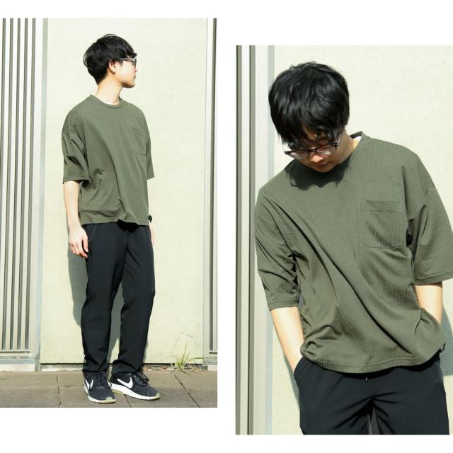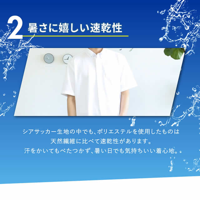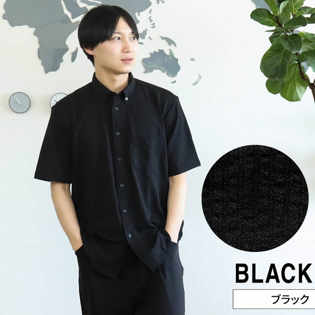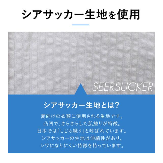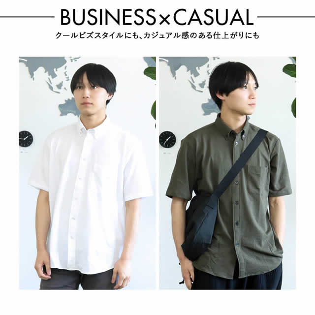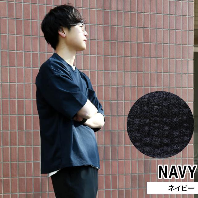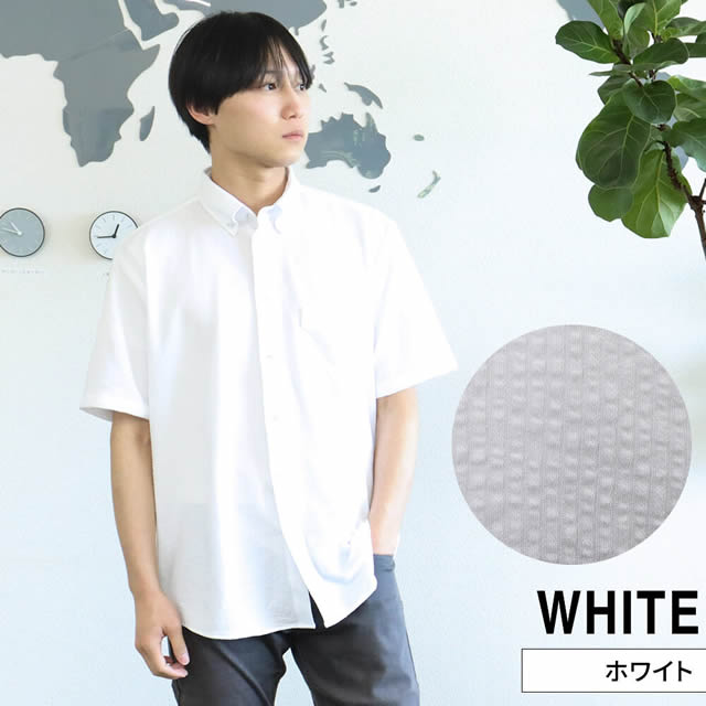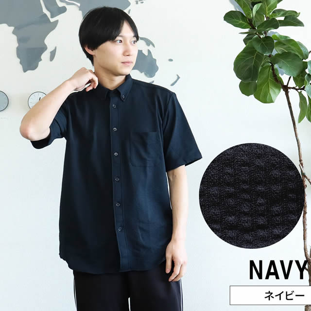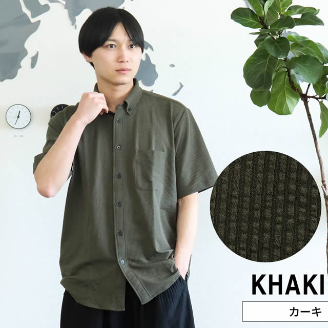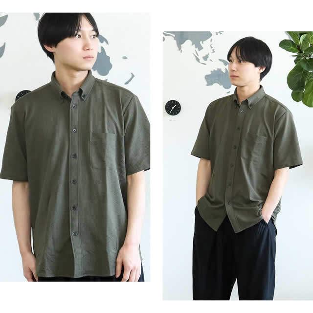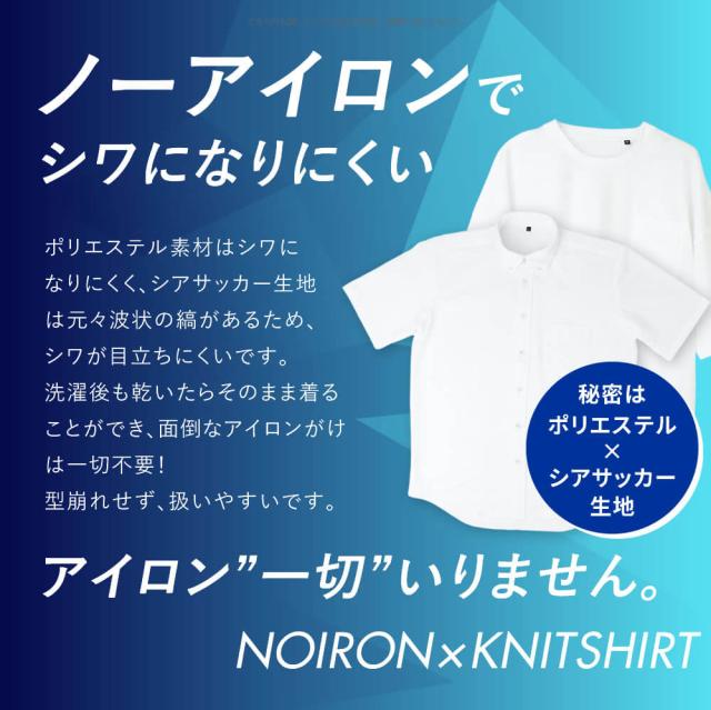 シアサッカー生地を使用した涼しいノーアイロンニットシャツ。さらっと着こなせるカジュアル半袖シャツ・Tシャツです