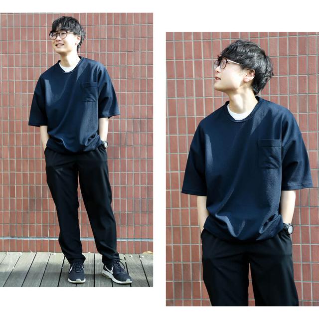 シアサッカー ニットシャツ Tシャツ ノーアイロン ストレッチ 半袖 シャツ メンズ 【2枚は2通】 sun-ms-cas-1929 白 黒 紺 カーキ ネイビー 仕事 速乾 ドライ ビジネス カジュアル サッカー生地 シンプル テレワーク 在宅