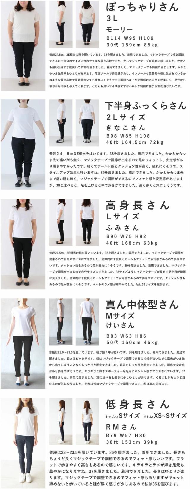 | 【36(23.0cm)】 足長 24.1cm 足幅 8.6cm 足囲 21.3cm ヒール高さ 5.0cm 【37(23.5cm)】 足長 24.6cm 足幅 8.7cm 足囲 21.7cm ヒール高さ 5.0cm 【38(24.0cm)】 足長 25.1cm 足幅 8.8cm 足囲 22.0cm ヒール高さ 5.1cm 【39(24.5cm)】 足長 25.6cm 足幅 8.9cm 足囲 22.4cm ヒール高さ 5.1cm | 素材 甲使用材 ポリエステル・ポリウレタン 底材 合成底 重さ(片足) 280g前後 メール便 不可 生産国 中国 モデル / 155cm 42kg |