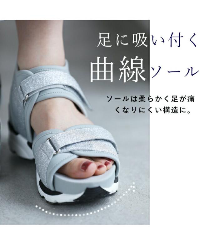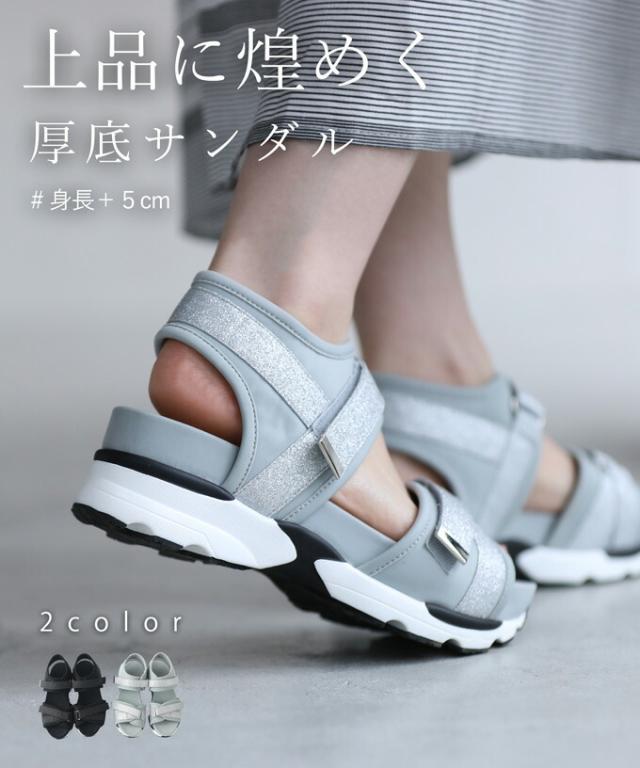 再入荷6月4日 上品に煌く 厚底ラメサンダル fne00013 cawaii ベルト ゴム スポーツ 厚底 サンダル レディース 歩きやすい クッション シューズ ファッション 上品 ミセス 30代 40代 50代 パーティー 母の日