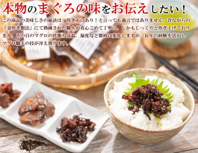 個性あふれる5種類のマグロ佃煮(角煮)はご飯のお供はもちろん、 お茶漬け、おつまみ つまみ、お酒の肴やお弁当の一品にも最適なお取り寄せグルメの人気商品です。 全品真空パックで日持ちも安心。この機会に是非お味見下さいませ!
