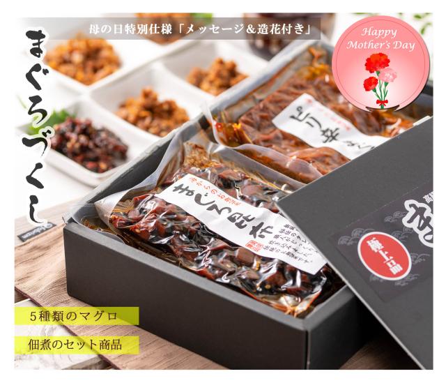 【送料無料】 お中元 ギフト マグロ 佃煮 まぐろづくし ギフトセット【 メッセージ 造花付き 】 ( マグロ佃煮 5種類 詰め合わせ ) 人気 ギフトセット まぐろ角煮 珍味 おつまみ 佃煮ギフト 人気 まぐろ 角煮 母の日のプレゼント お中元ギフト 花 人気