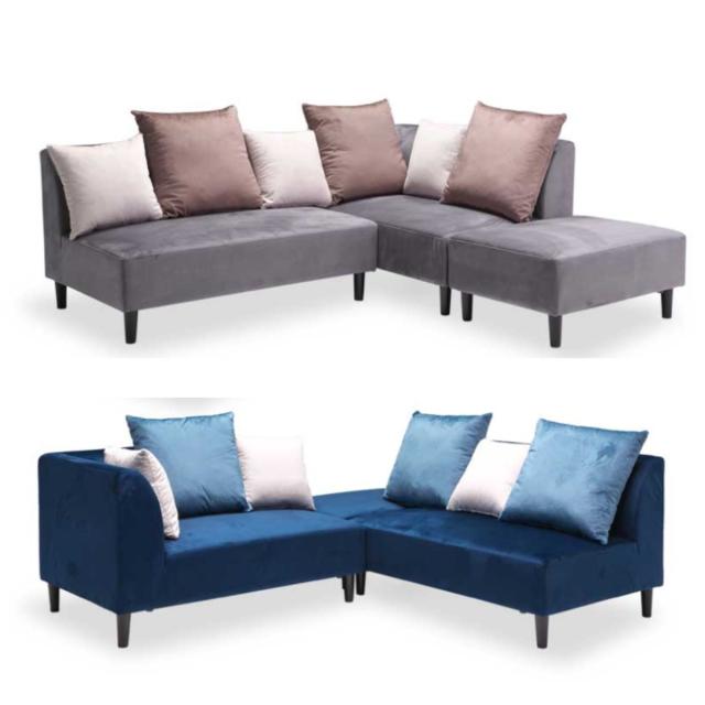 《 2人用 3人用 二人掛け 二人 三人掛け ソファー L字 ロータイプ クッション付き 脚 取り外し 組合せ自由 グレー ブルー ファブリック お洒落 オシャレ リビング 北欧風 シンプル 海外インテリア 家具 新居 引っ越し 新生活 sofa 》