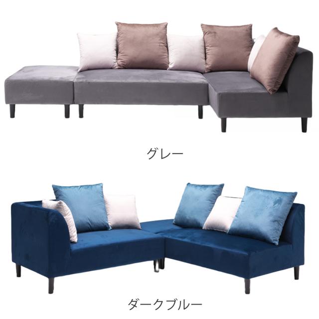 ソファ 3人掛け クッション スツール ( 開梱設置 カウチソファ ローソファ コーナーソファ l字 オットマン付き ソファセット 3点セット ベロア調 おしゃれ モダン スタイリッシュ )
