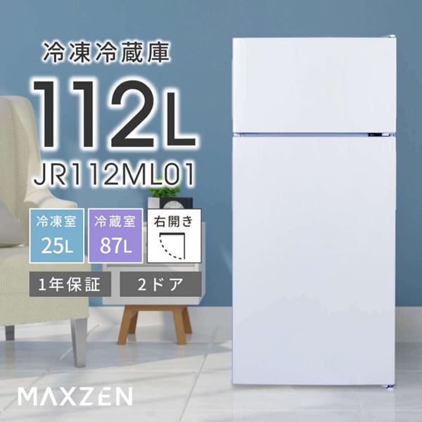 【メーカー直送】冷蔵庫 小型 2ドア 112L 新生活 ひとり暮らし 一人暮らし コンパクト 右開き ホワイト MAXZEN JR112ML01WH