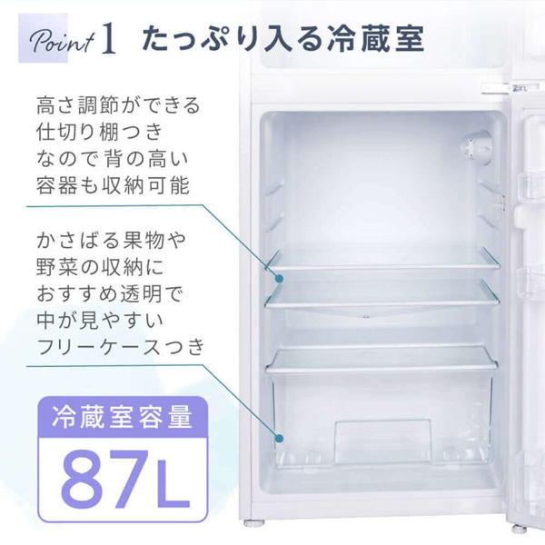 | 定格内容積 | 112L(冷凍室:25L 冷蔵室:87L) |