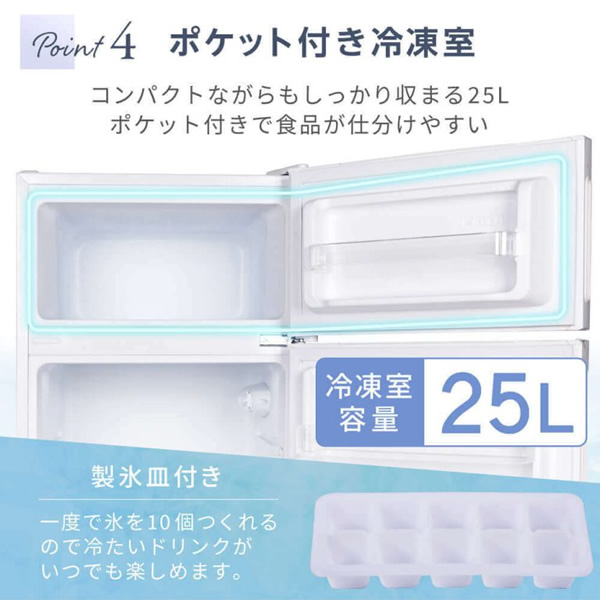 一人暮らし向け!外食派に! ■外形寸法:W470×D498×H1,045mm ■重量:29kg ■定格周波数:50/60Hz ■定格内容積:112L(冷凍室:25L 冷蔵室:87L) ■定格電圧:100V ■定格消費電力:55W(50/60Hz共通) ■年間消費電力量:222kWh/年 ■駆動音:27dB ■電源コード長:約1.8m ■天板耐荷重:30kg ■冷却方式:直冷式(庫内温度調整ダイヤル付き) ■冷媒:ノンフロン R600a ■使用環境:周辺温度:5〜35℃、周辺湿度:20〜80%(結露なきこと) ■製造国:中国 ■付属品:製氷皿、卵ケース、霜取り用ヘラ、冷蔵室ポケット:小×2、冷蔵室ポケット:大、仕切り棚:小、仕切り棚:大×2、フリーケース、取扱説明書(保証書付き) ※記載は商品仕様の一部です。仕様説明不足等の理由での返品はできません。特に適合等は必ずご確認ください。
