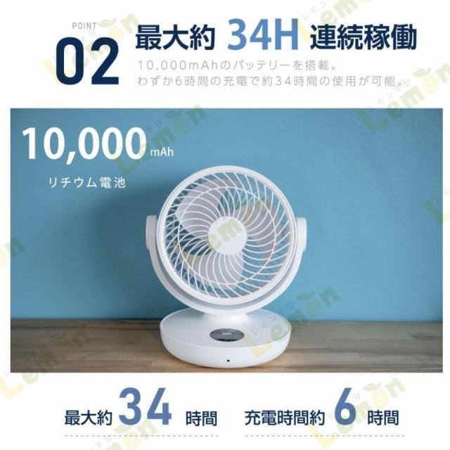 【DCモーター静音設計&省エネ】DCモーターを搭載することにより、静音性に優れています。就寝時や作業に集中したい時に扇風機の動作音が気になる方には最適です。DCモーター仕様で、1回のフル充電で電気代はわずか1円で、最大34時間連続使用可能、省エネ性能に優れた製品です。