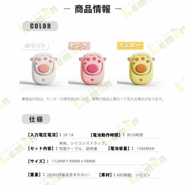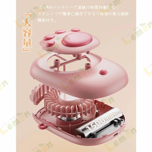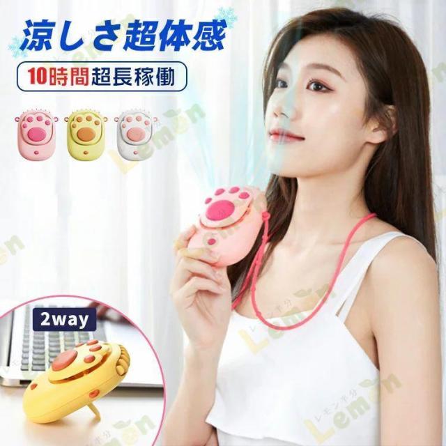 ミニ扇風機 扇風機 携帯扇風機 卓上扇風機 小型扇風機 くびかけ ハンディファン 首かけ 卓上 可愛い 猫 肉球 3WAY 首かけ扇風機 軽量 長時間 ハンズフリー