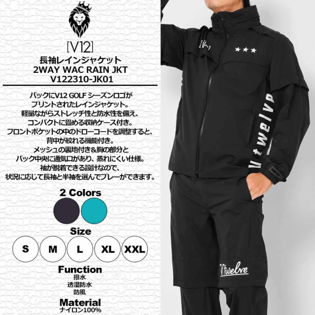 V12 ゴルフ メンズ 長袖 レインジャケット 2WAY 収納ケース付き WAC RAIN JKT V122310-JK01 ヴィ・トゥエルヴ 【新品】SAAR レインウェア V12 GOLF APR2