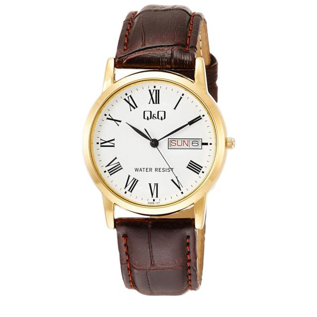シチズン 腕時計 アナログ 日本製ムーブメント 防水 日付 曜日 革ベルト ブラウン メンズ A206-107/1979