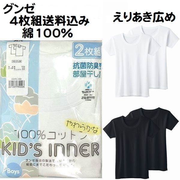 4枚組 グンゼ 子供肌着 半袖丸首 シャツ えりあき広め インナー キッズ 男の子 100cm〜160cm 綿100% 抗菌防臭 BF6850