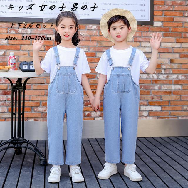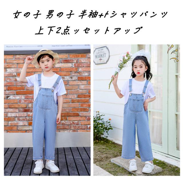 子供服 セットアップ 男の子 女の子 夏服 tシャツ 半袖 ガウチョパンツ サロペット ズボン おしゃれ 可愛い 上下2点セット 夏新作