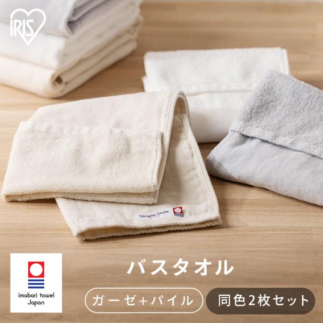 ★クーポンあり★ パイルバスタオル 2枚セット BT-G2 ガーゼ+パイルバスタオル2枚セット バスタオル バス タオル 2枚 同色セット ガーゼ パイル 速乾 今治製 今治タオル ホテルタオル タオル 日本製 吸水 柔らか ふわふわ 無地 白 アイボリー グレー ガーゼタオル