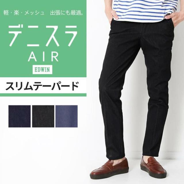 EDWIN エドウィン デニスラ AIR スリムテーパード メンズ テーパード パンツ スラックス チノパンツ ストレッチ 楽 通勤 ブランド スッキリ 紳士 男性 春 夏 ビジカジ ビジネス EDB101 エアー 夏用 涼しい 爽やか デニム ズボン ネイビー 黒 ブルー