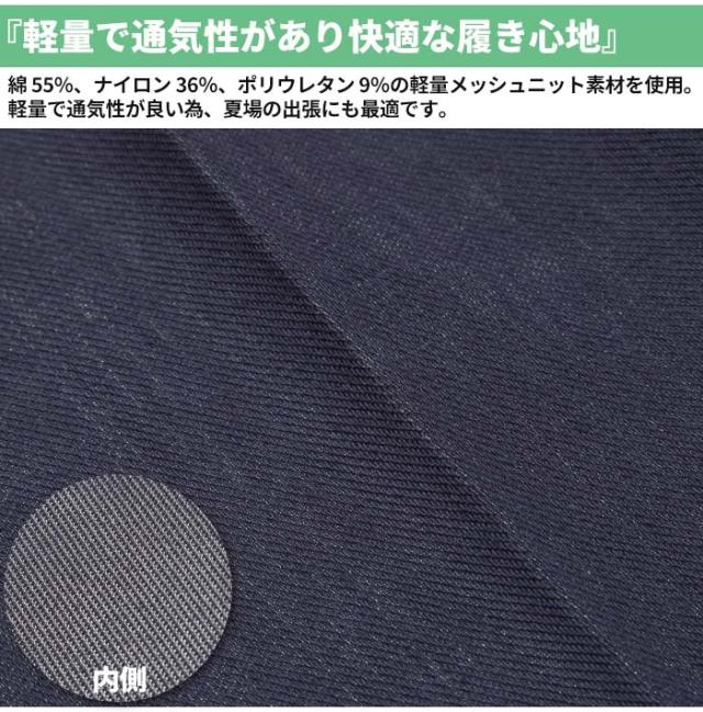 出張にも使える!軽量スーツデニスラAIR!! EDWINが独自開発した、軽量で通気性のあるメッシュニット素材を採用。編み組織により360度の伸縮性を実現し、ストレスフリーな着心地をお届けします。ニット(編み物)でありながら織物の様な綾目が立つのが特徴です。 軽い穿き後心地でこれからの季節にピッタリ!シルエットはもも周りには程よいゆとりがありながら、足元にかけてゆるやかに細くなるスマートなスリムテーパード。伸縮性もあり、動きやすさも抜群。 軽量で通気性が良い為、出張にも最適です。もちろんビジネスシーンだけでなく、TシャツやモックネックTシャツなどと組み合わせたきれいめコーディネートで休日のお出かけスタイルにもオススメ! |