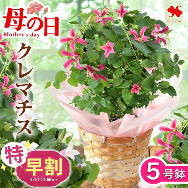 特早割 母の日 花 鉢植え 2026 クレマチス 5号鉢 in バスケット プリンセスダイアナ ミルキーリップ 送料無料 母の日ギフト 母の日プレゼント 鉢花 花鉢 花 母親 お母さん 義母 おしゃれ 可愛い 生花