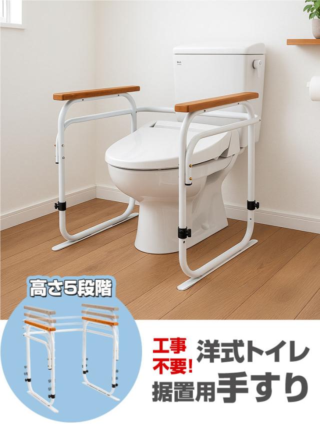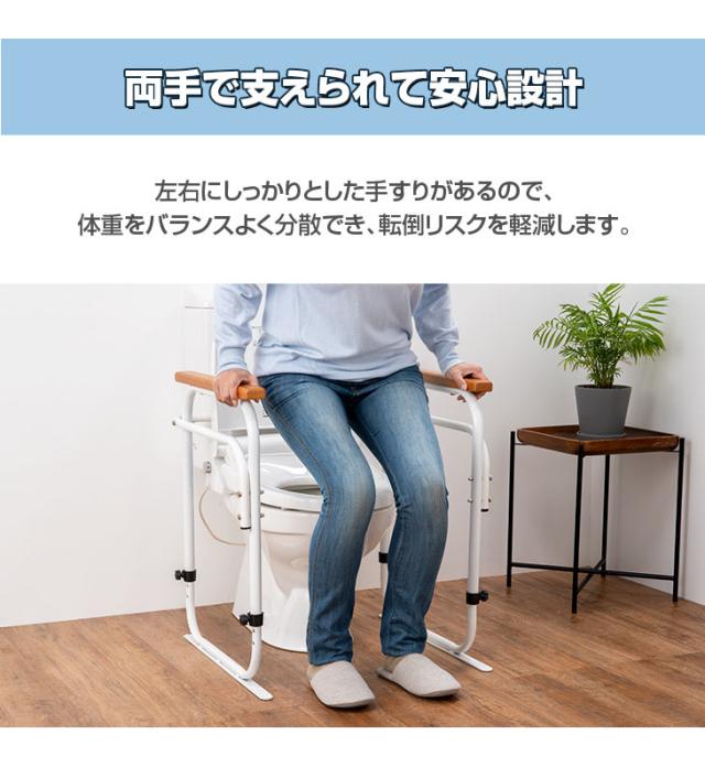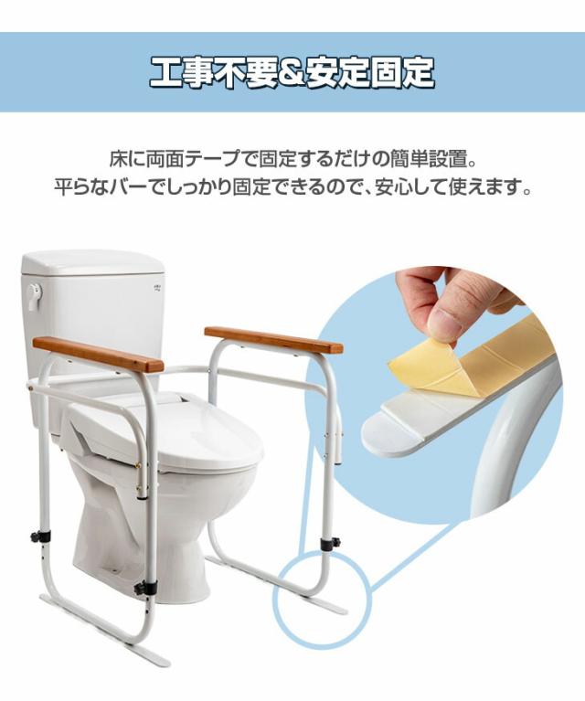 トイレ手すり 洋式トイレ用 手すり 洋式トイレアーム 左右両側 トイレアーム 洋式アーム 高さ調節可能 工事不要 据置タイプ 固定テープ付き