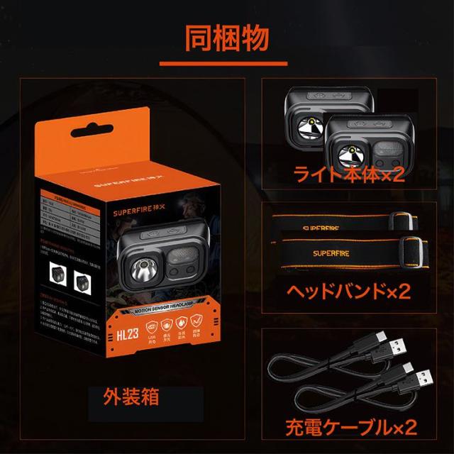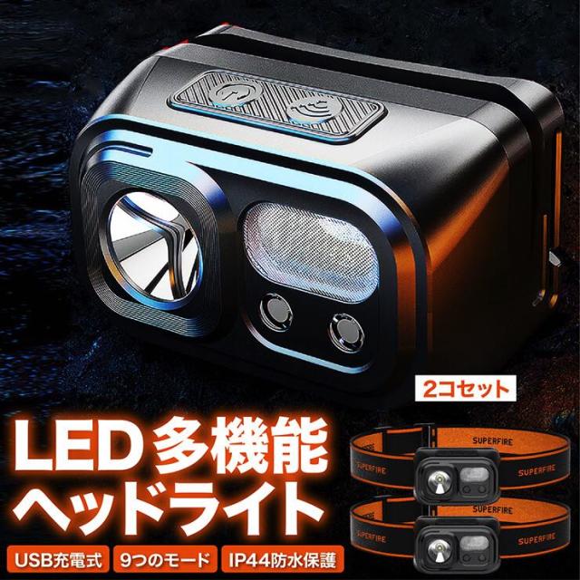 2023年 2個 充電式 メットライト ヘッドライト センサー機能 角度調整可 9種類モード 遠光 散光 SOS点滅 軽量 高輝度 登山