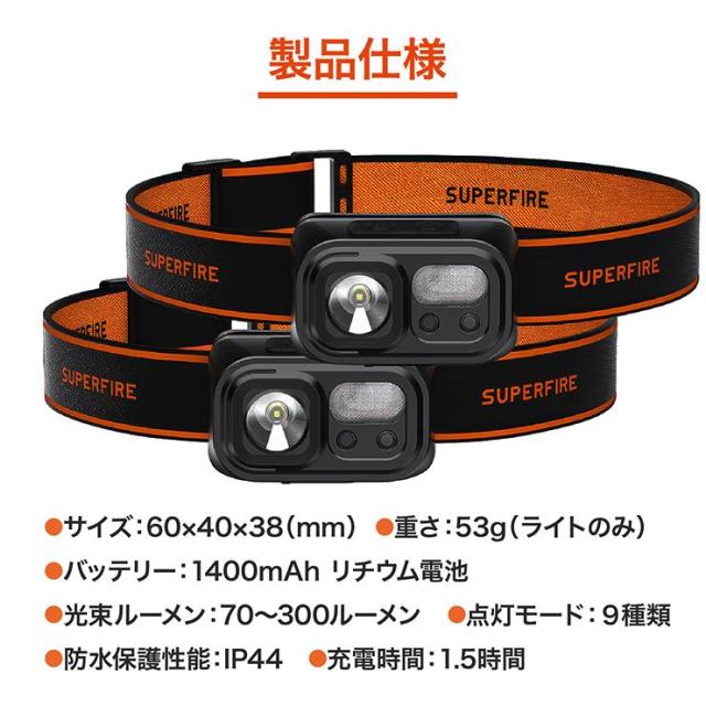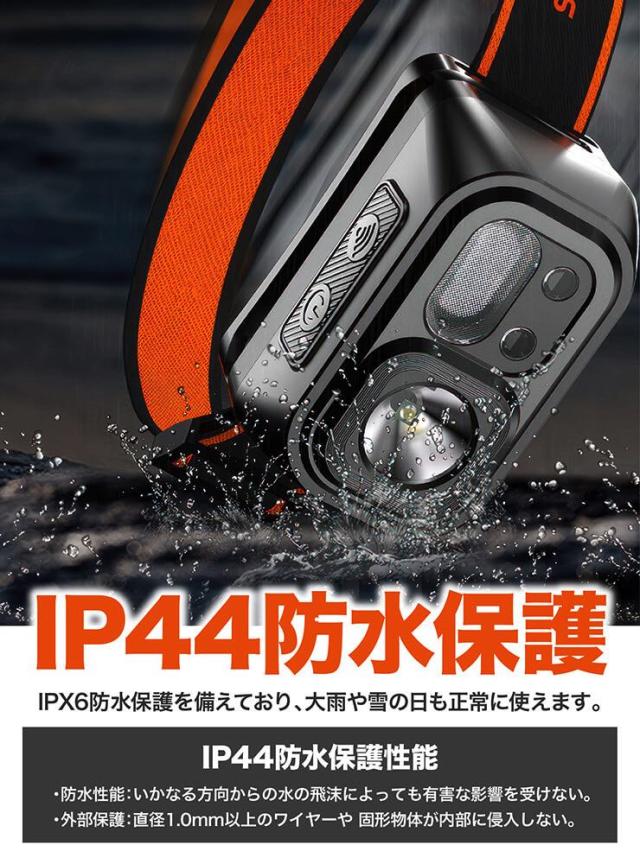 IPX6防水機能を備えており、大雨や雪の日も正常に使えます。通気性良いのヘッドバンドは弾力がある、長時間装着しても疲れにくいです。自由に調整でき、ヘッドバンドの上に反射テープが付いて、夜間アウトドア活動にはには安心です。