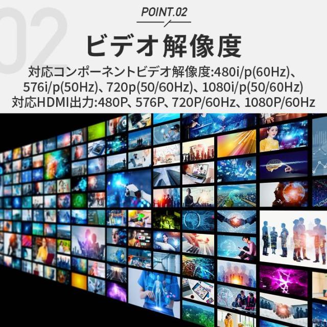 対応コンポーネントビデオ解像度:480i/p(60Hz)、576i/p(50Hz)、720p(50/60Hz)、1080i/p(50/60Hz) 対応HDMI出力:480P、576P、720P/60Hz、1080P/60Hz
