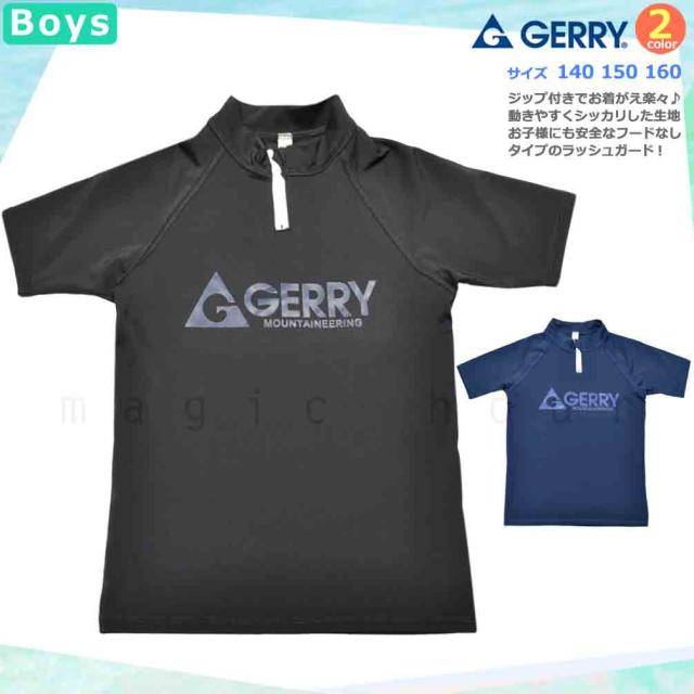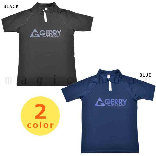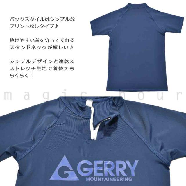 ◆ ラッシュガード キッズ ジュニア ボーイズ 半袖 GERRY ジェリー UVカット ハーフジップ 速乾 ストレッチ ラッシュ 学校 スクール UPF50+ ◆