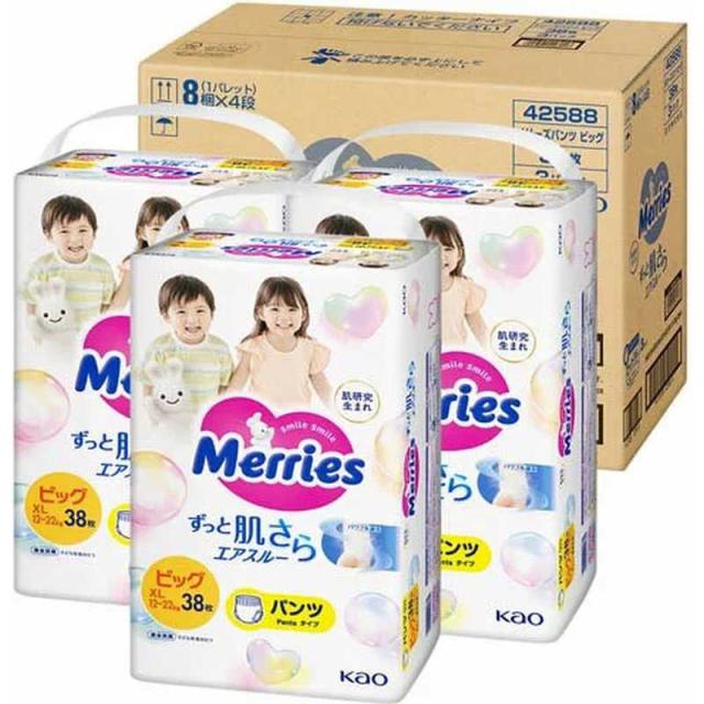 花王 (ケース販売) メリーズ ずっと肌さらエアスルー パンツ ビッグサイズ(12-22kg) 38枚×3個(114枚)