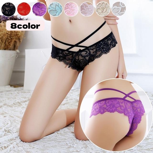花柄レースに紐デザインがセクシーなTバックショーツ。