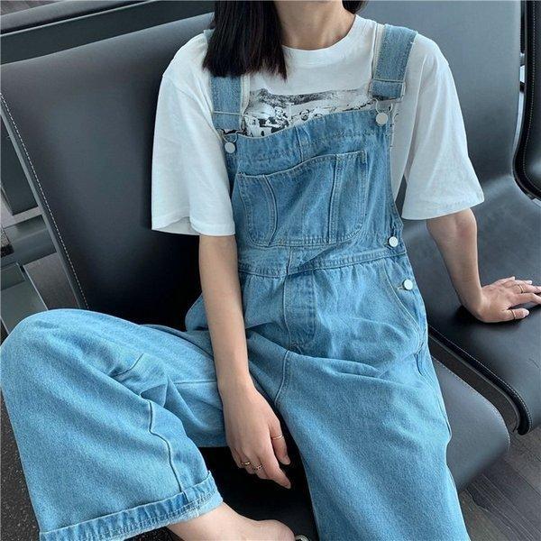サロペットオーバーオールレディースワイトパンツ薄手デニムパンツゆったりボトムス大きいサイズ安い春夏新作20代30代40代オシャレ着痩せ