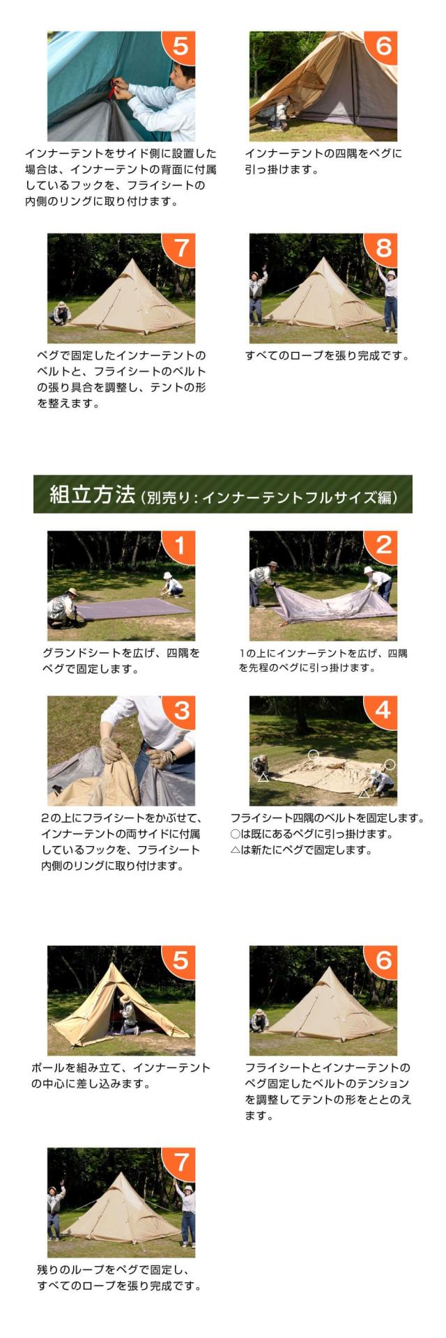 左右対称型で建てやすいピラミッド型ワンポールテント。初心者の方でもわかりやすいシンプルな構造です。