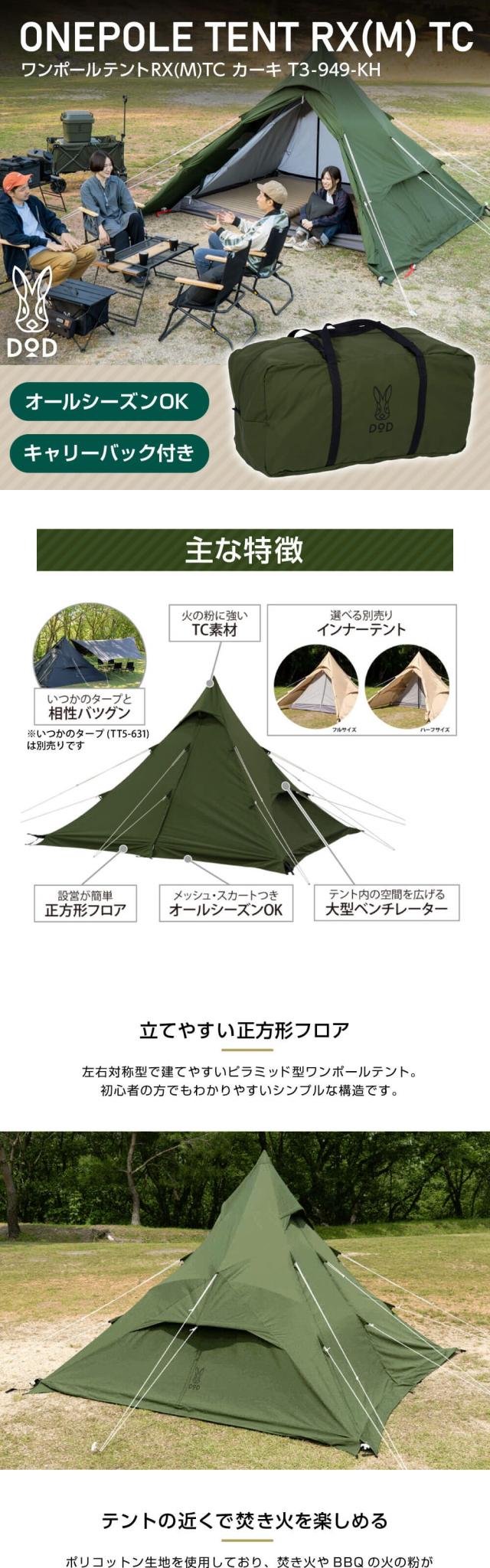 DOD テント ワンポールテントRX M TC T3-949-KH dod 正方形 ワンポール ポリコットン 4人 オールシーズン
