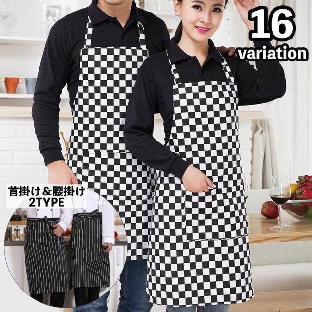 エプロン 首掛け 胸当てエプロン 腰エプロン 腰掛け 前掛け 大人用 レディース メンズ ポケット付き ストライプ チェック 無