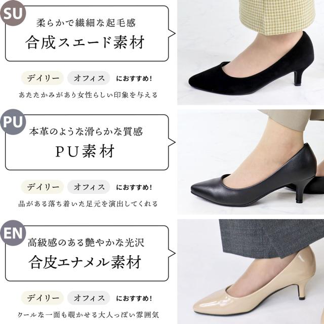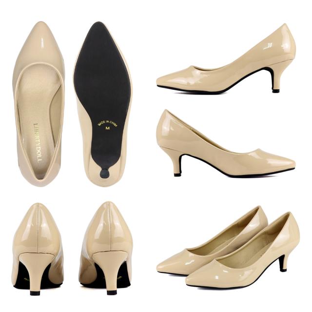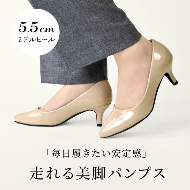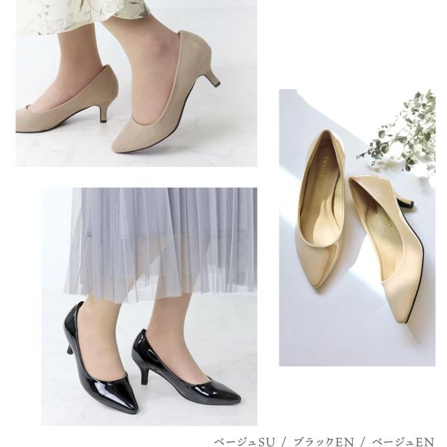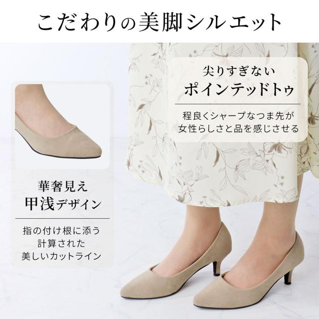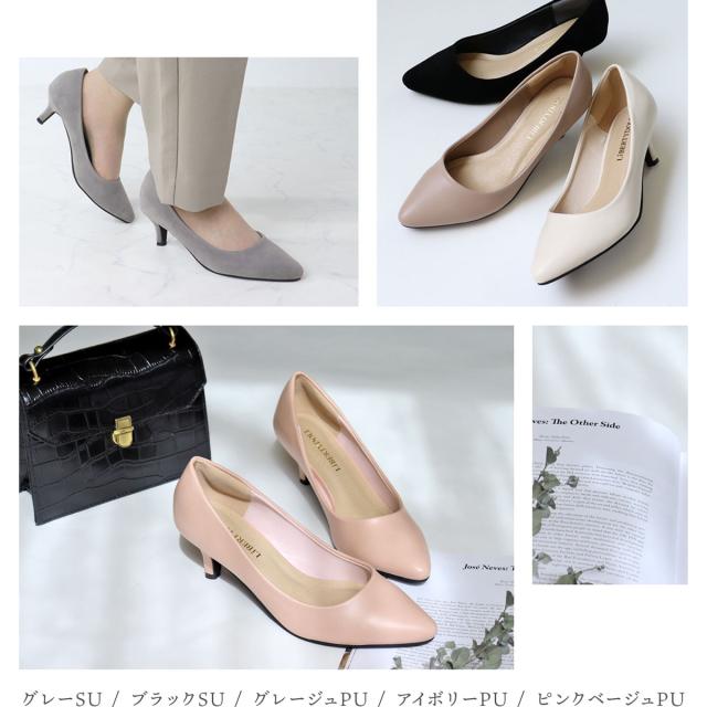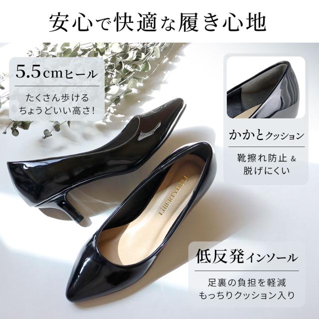 パンプス 痛くない 5.5cmヒール ポインテッドトゥ 走れる ミドルヒール 通勤 脱げない 黒 レザー スエード 合成皮革 2E ブラック ベージュ グレー 22.0-25.0cm リバティードール No.5415