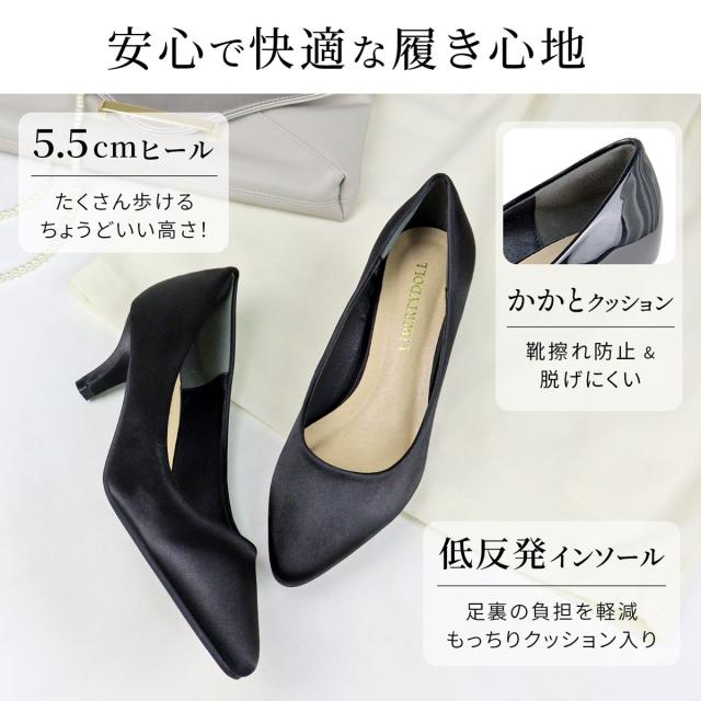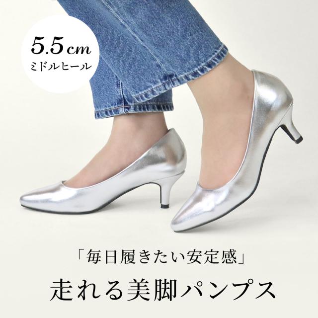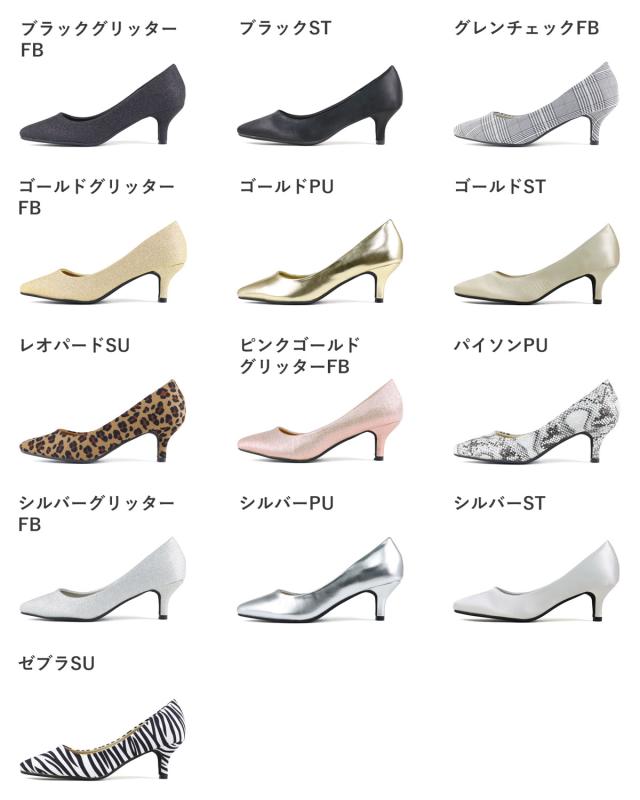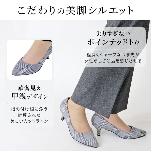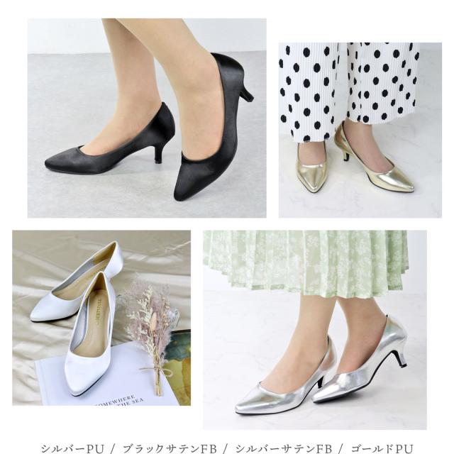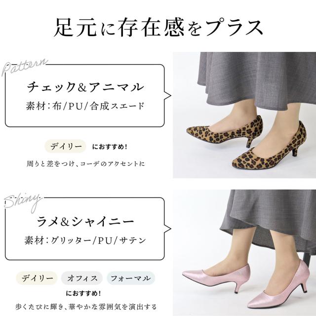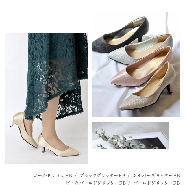 パンプス 痛くない 5.5cmヒール ポインテッドトゥ 走れる ミドルヒール 通勤 脱げない ゴールド シルバー チェック サテン グリッター 合成皮革 2E 22.0-25.0cm リバティードール No.5415