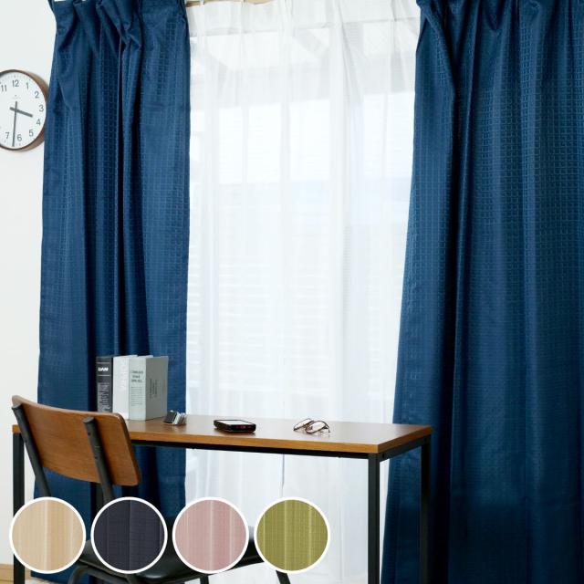 カーテン 4枚セット 幅100cm×丈135cm ドレープカーテン レースカーテン ( カーテンセット ドレープ レース 既製 間仕切り 窓 目隠し 光沢 採光 非遮光 ウォッシャブル 格子柄 シンプル セット 4枚組 両開き フック 腰高窓 )