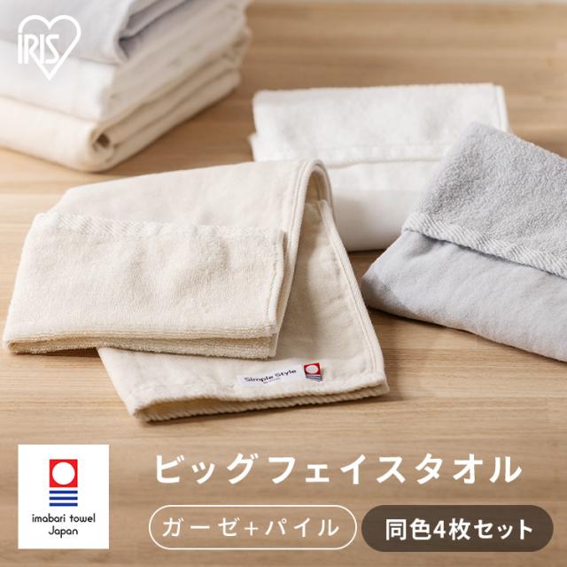 ★クーポンあり★ ビッグフェイスタオル 4枚セット BFT-G4 フェイスタオル ガーゼ+パイルビッグフェイスタオル4枚セット ビッグ フェイス タオル 4枚 同色セット ガーゼ パイル 速乾 今治製 今治タオル ホテルタオル タオル 日本製 吸水 柔らか ふわふわ 無地