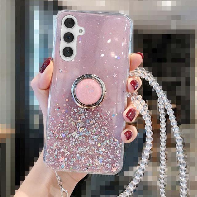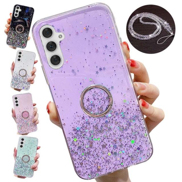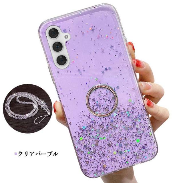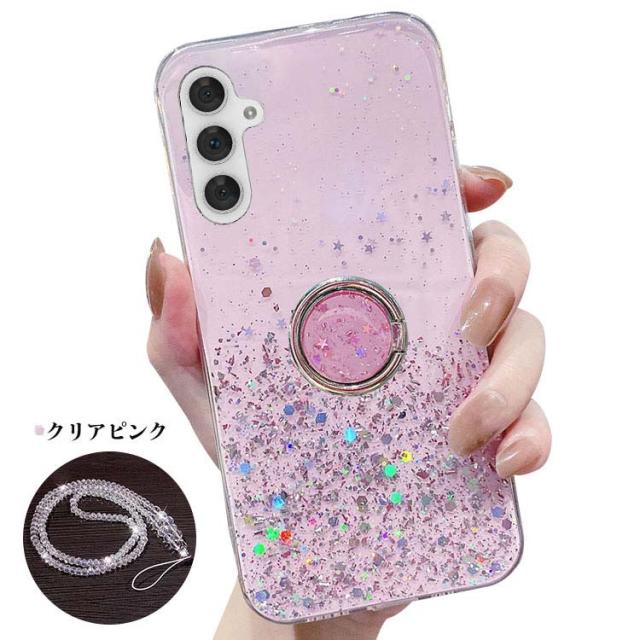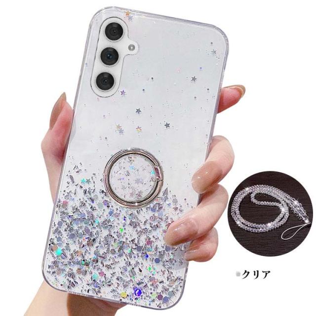 Samsung Galaxy A54 5G クリアケース カバー クリア 透明 分離型スマホリング付き 肩掛け ストラップ付き スマホショルダー 可愛い かわいい きらきら エレガント おしゃれ レディース サムスン ギャラクシー A54 5G ソフトケース/カバー アンドロイド スマホケース/カバー