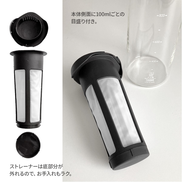 HARIO ハリオ 水出し珈琲ポット ブラック MCPN-14-B | 水出し コーヒー ストレーナーつき 耐熱 ガラス ピッチャー 冷水筒 ボトル 珈琲ポット アイスコーヒー 取っ手付き 食洗機対応 おしゃれ